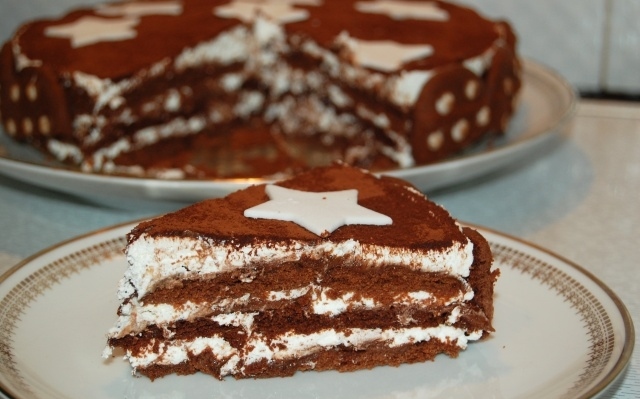Ricoprire spolverizzando con il cacao amaro e mettete la torta pan di stelle in frigo per 2 ore.