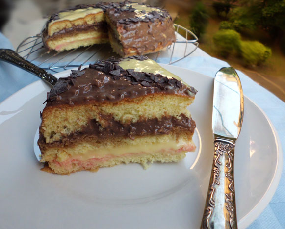 La pizza dogge abruzzese è un pan di spagna farcito con crema al limone e crema al cioccolato a strati… una delizia!