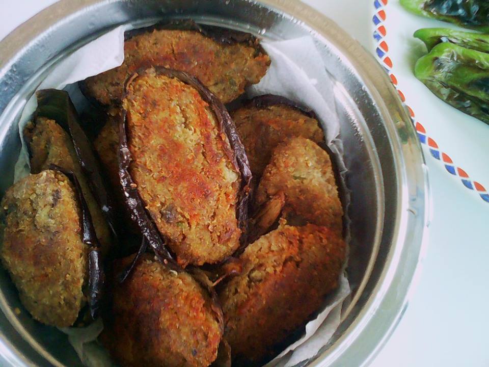 Amalgamare le melanzane con 30gr di farina, il pangrattato, l'uovo, la menta tritata, sale e pepe a piacimento.