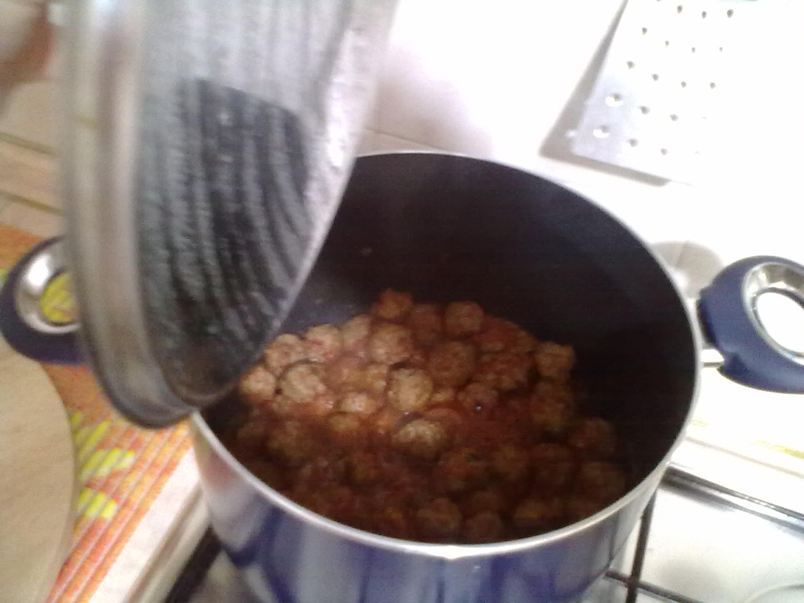 Quando il sugo bollira' aggiungete delicatamente le polpette
