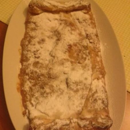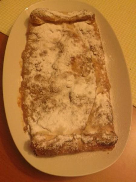 Stendete la pasta sfoglia su una placca da forno e disponete al centro l’impasto, chiudete i bordi sovrapponendo al centro e poi i due più corti in modo da formare un rettangolo