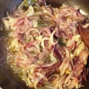 - quando saranno appassite, aggiungere i filetti di acciuga e scioglierle nel condimento.