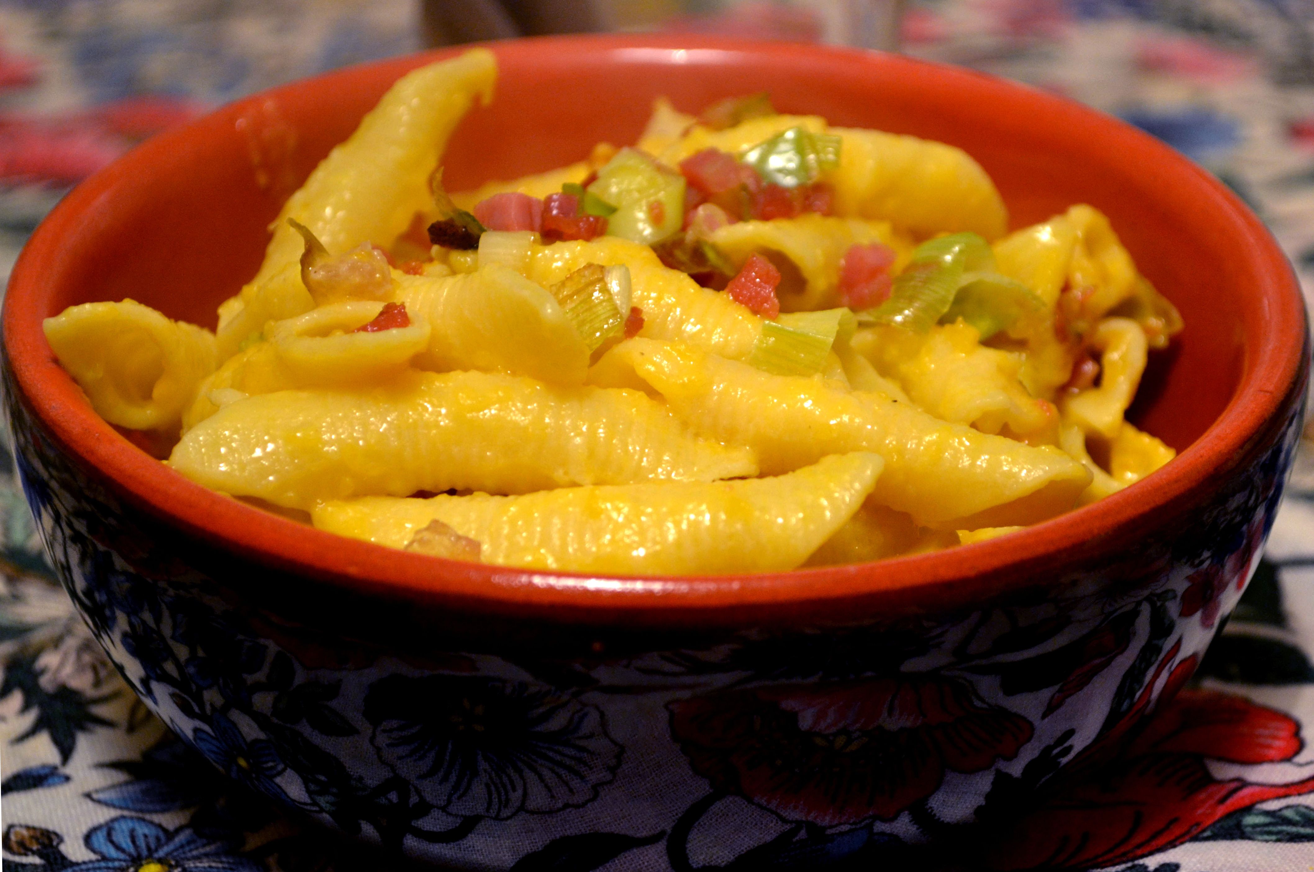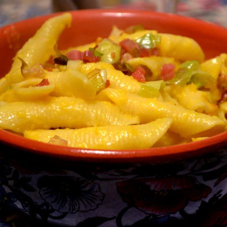 Condite la pasta con la crema di zucca e servite il tutto molto caldo.
