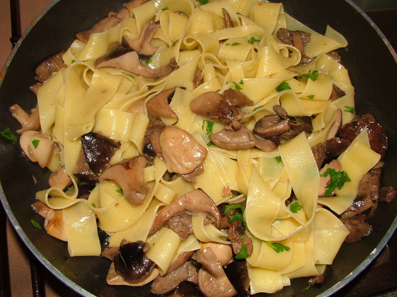 Cuocete le pappardelle in abbondante acqua salata. A metà cottura scolate la pasta nella padella con i porcini, aggiungete due mestoli d'acqua e portate a cottura "risottandola".