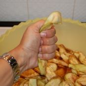 Lavate e asciugate per bene le melanzane, privatele del picciolo, tagliatele a fette spesse mezzo centimetro, magari con l’aiuto di una mandolina. Riducetele a strisce larghe più o meno un centimetro e mettetele in una ciotola fate uno strato di melanzane cospargete con uno strato di sale, sistemate le melanzane a strati alternando con il sale e pressandole bene fino a riempire la ciotola. Lasciatele spurgare per una notte in frigorifero, in modo che fuoriesca tutta l’acqua di vegetazione. Il giorno dopo sciacquate le melanzane sotto l’acqua corrente per eliminare il sapore acre dell'acqua di vegetazione.