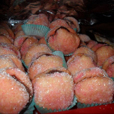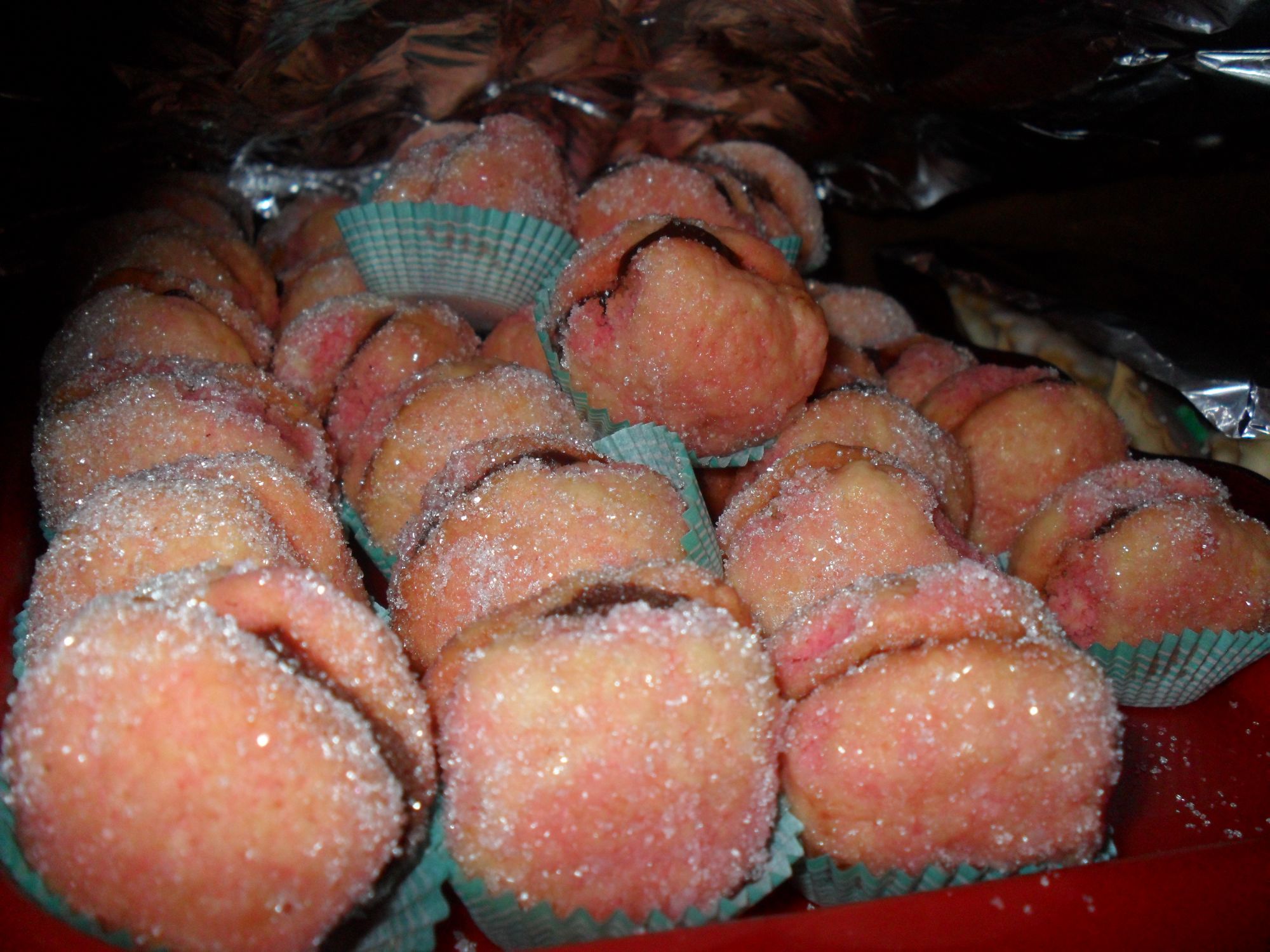 dopo averle sfornate, bagnarle nell'alchermes,mettere un pò di crema o nutella per attaccarle a coppie, farle rotolare nello zucchero e inserirle nei pirottini.