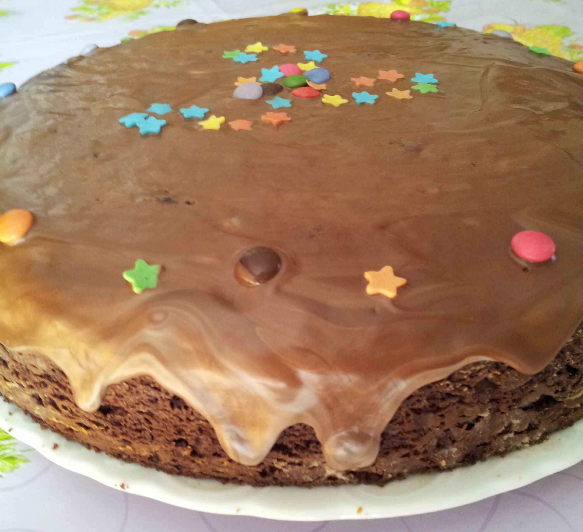 Coprire la torta con la glassa e se si vuole si può abbellire con confettini colorati.