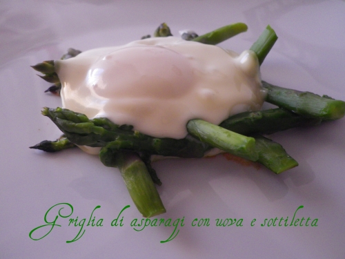 Griglia di asparagi con uovo e sottiletta
