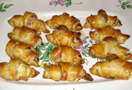 Adagiare i rotolini sulla placca del forno, distanziati l'uno dall'altro. Spennellarli con il tuorlo d'uovo e fare cuocere in forno a 180° per 30 minuti circa.
