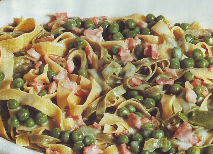 Per prima cosa sgranate e lavate i piselli, lessateli ed infine scolateli.