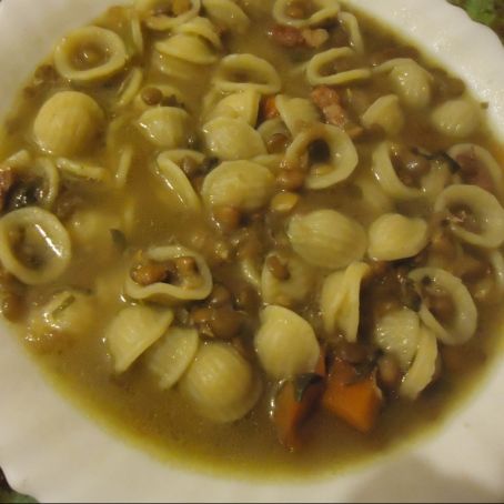 Una pasta e lenticchie tipica dei pasti invernali.