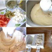 Nella impastatrice mettere la farina, lo zucchero, l'olio e azionarla aggiungendo poco per volta il latte con il lievito, quindi mettere il sale. Impastare fino ad ottenere un composto omogeneo e lasciare lievitare fino al raddoppio (io ho lasciato il tutto nell'impastatrice). Intanto preparare gli ingredienti che verranno messi nell'impasto: lavare e asciugare per bene il pomodoro e tagliarlo a cubettini, tagliare a rondelline le olive e a cubettini anche la mozzarella. Mi raccomando asciugate tutto per bene per non inumidire l'impasto.