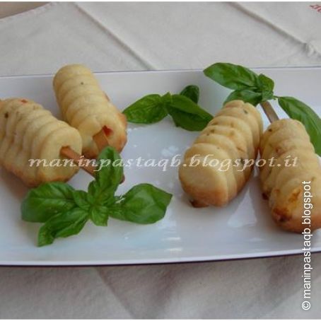 Piccoli panini al gusto pizza con lo stecchino, da proporre come aperitivo o un finger food