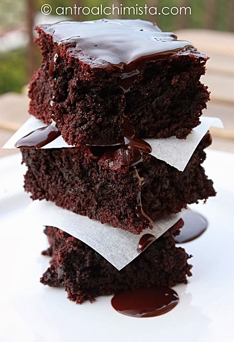 Capita che talvolta vi prende quella voglia smodata di intasare le vostre vene con dei Brownies altamente cioccolatosi e burrosi ma… vi accorgete che a casa avete finito tutto il cioccolato, Nutella compresa. Ecco questi a casa mia sono segreti scomodi che vanno tenuti rigorosamente per sé, palesare questa inconfutabile verità al marito vorrebbe dire incappare nel secondo divorzio della mia vita. Comunque anche senza cioccolato fondente sono riuscita a tirare fuori dei brownies da leccarsi dita, baffi e teglia e nessuno, almeno qui, si è accorto della sostituzione del blasonato cioccolato con un più vile cacao amaro in polvere.