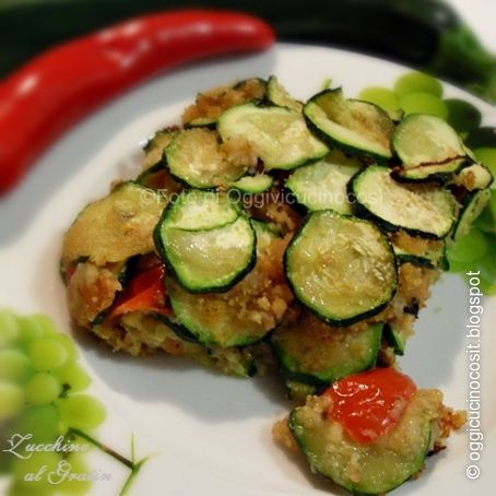 Ultimate con le zucchine salando leggermente e irrorate con l'olio e una spolverata di pangrattato.