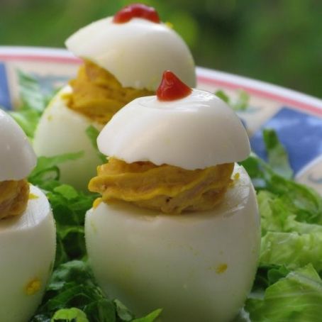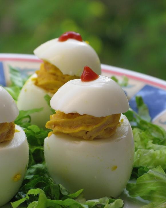 Riempite i mezzi albumi con il composto. Chiudeteli con gli albumi "cappuccio" come se il composto facesse capolino dall'uovo.