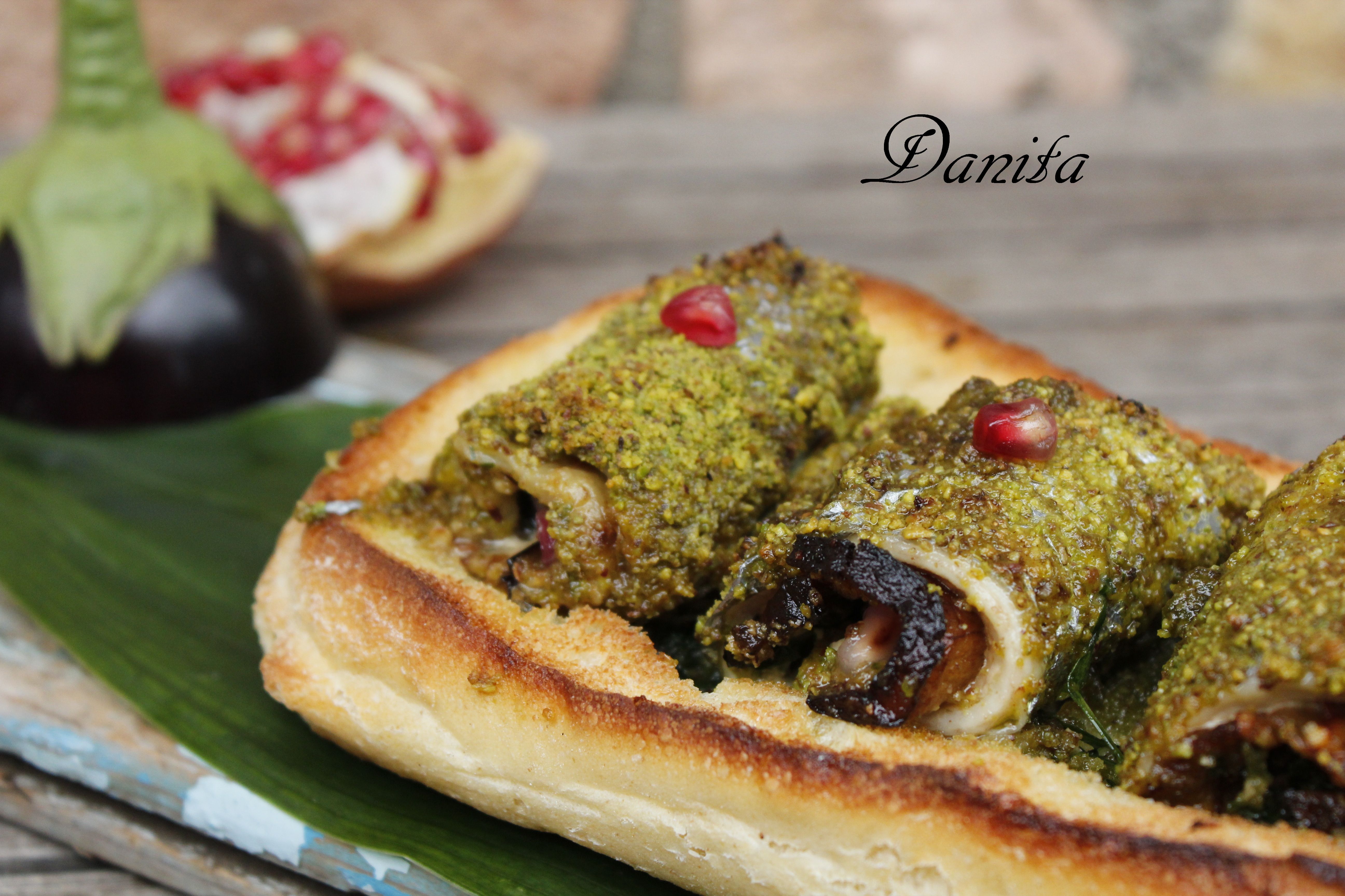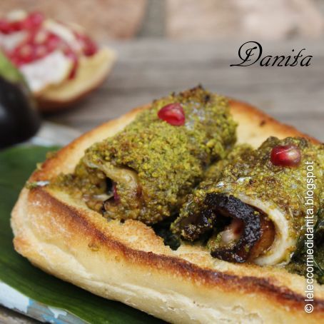 Una ricetta sperimentata per questo contest, un abbinamento davvero meraviglioso: melanzane, pesce e melagrana con la panatura di pistacchio