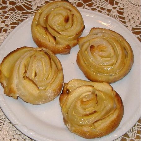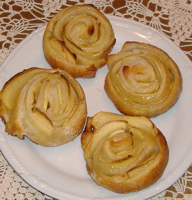 Mettete le fettine di mele una di fianco all’altra accavallando le leggermente e richiudete la sfoglia. Arrotolarla su a forma di rosa.