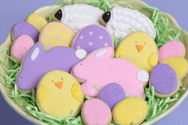 Decorare i vostri biscotti di pasqua con la glassa, lasciate che essa si asciughi pima e poi servite