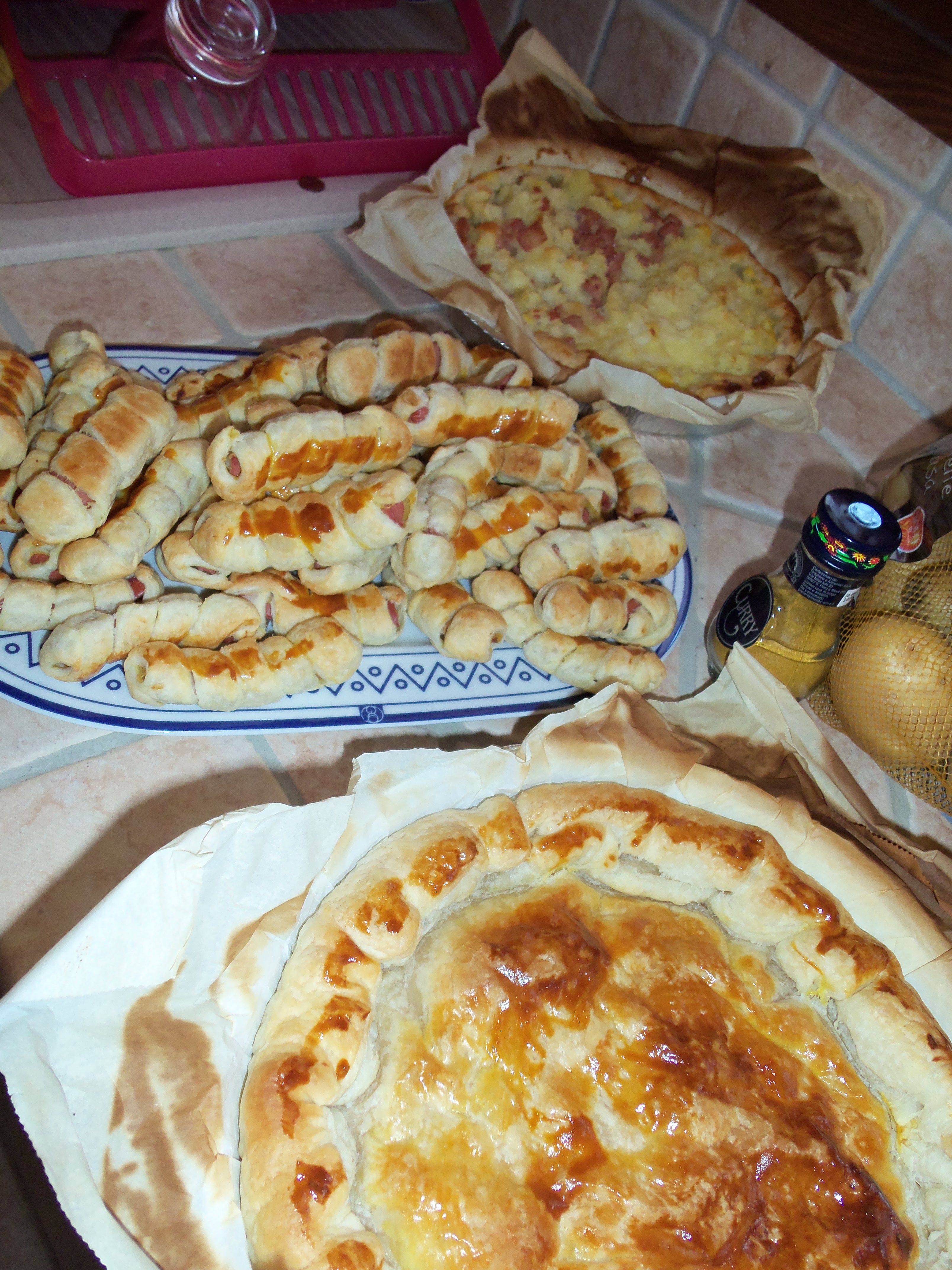 Stendere il secondo rotolo di pasta sfoglia sopra la torta e richiudere saldando i bordi con una forchetta. Pennellarla con un tuorlo d'uovo sbattuto e cuocere a forno medio per circa 20-25 minuti.