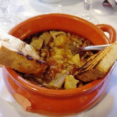 Disporre le fette in una zuppiera e versarvi sopra la minestra bollente, continuate con gli strati di pane e di zuppa.