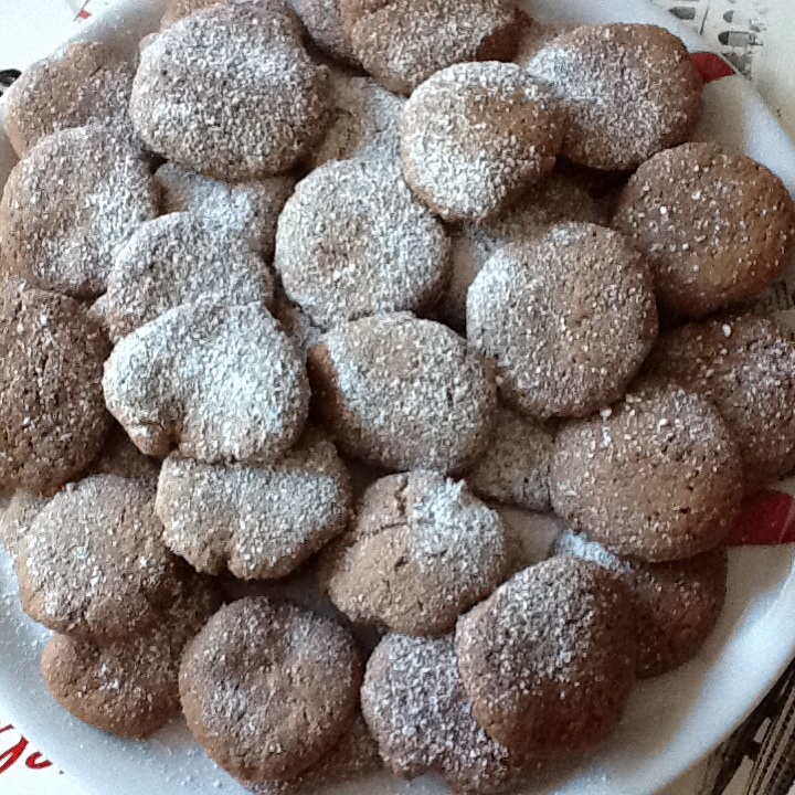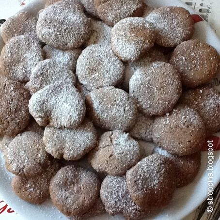 Fate fondere 200 g di cioccolato fondente con 75 g di burro. In un'altra ciotola, sbattete 2 uova intere con 110 g di zucchero e unitevi il composto di cioccolato. Incorporate 250 g di farina setacciata, 1/2 bustina di vanillina, 1/2 cucchiaino di lievito per dolci e un pizzico di sale. Lasciate riposare l'impasto in frigorifero per un'ora. Formate poi delle palline, passatele in un po' di zucchero a velo e trasferitele su una teglia ricoperta di carta da forno, quindi infornate a 180°C per 12-15 minuti. Una volta usciti dal forno, lasciateli raffreddare e cospargeteli di zucchero a velo.
