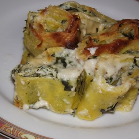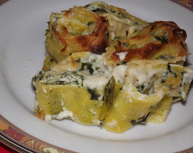 Cuocere gli spinaci poi strizzarli ed impastare con ricotta un po' di basciamella, preparata in precedenza, sale, pepe, noce moscata e parmigiano.