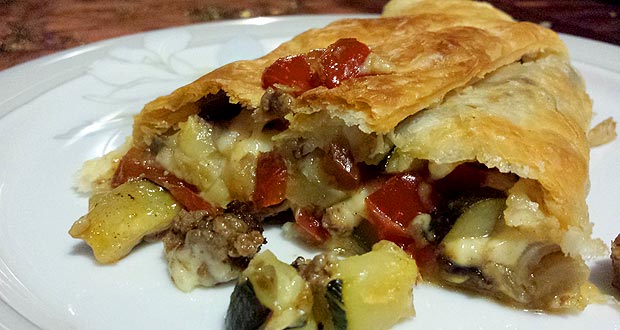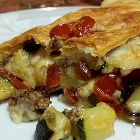 Oggi sono ufficialmente finite le mie ferie e, a malincuore, sono tornata a lavoro. Stasera, al mio ritorno a casa ero davvero esausta e francamente, di inventarmi qualcosa per la cena, non ne avevo proprio voglia. Ho aperto il frigo ed ho letteralmente pescato un po’ di avanzi. Avevo qualche verdura, un pezzo di formaggio, un hamburger ed un rotolo di pasta sfoglia, ho assemblato il tutto, gli ho dato un tocco di sapore con un pizzico di cannella ed è venuto fuori questo strudel di carne e verdure a dir poco delizioso!