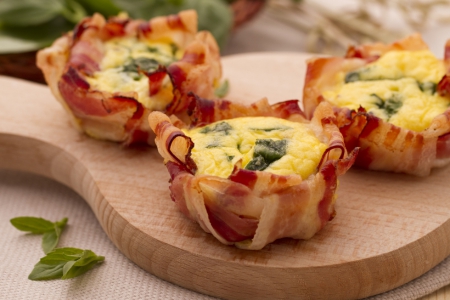 Le frittatine nella pancetta sono gustose porzioni di croccante pancetta contenente una piccola frittata. ottime sia come aperitivo che da servire in brunch.