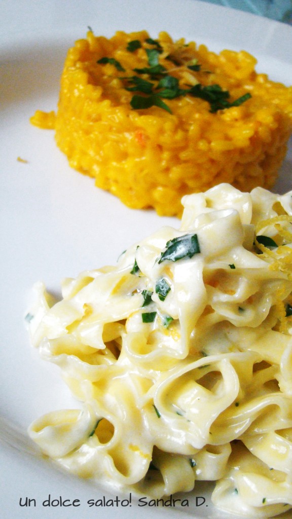 Una volta impiattato il risotto buttiamo le tagliatelle nell’acqua bollente e le facciamo cuocere per uno max due minuti e le scoliamo direttamente nella padella con il burro aromatizzato al limone.