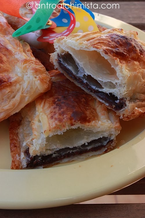 Una ricetta non ricetta fatta in versione "basic" con solamente 2 ingredienti: pasta sfoglia e nutella, ma potete anche arricchirla con nocciole tritate, scagliette di mandorle, lamelle di cocco. Potete sostituire la nutella con della crema, con della marmellata, con della ricotta lavorata con della confettura di castagne... insomma libero sfogo alla vostra fantasia e a quello che il vostro palato maggiormente gradisce.
