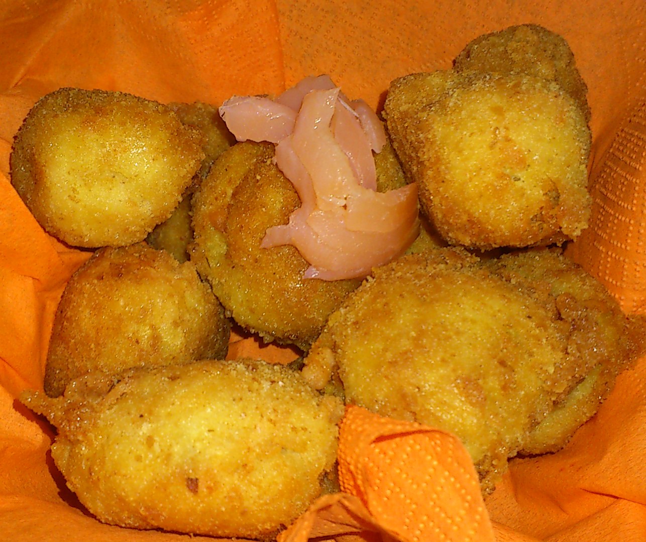Friggete le crocchette al salmone in abbondante olio caldo e servite insieme alle tartine.