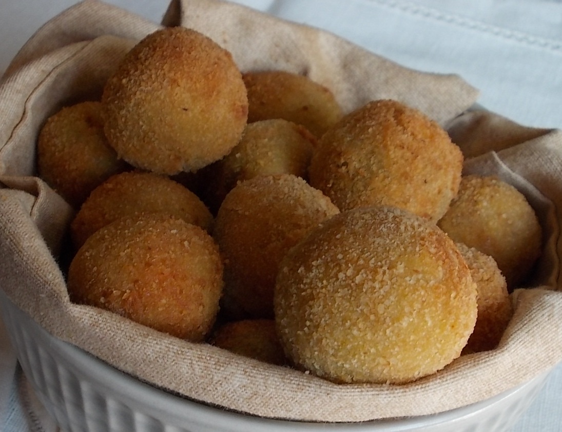 Trasferitela nel mixer e frullatela, versatela in una ciotola, poi incorporatevi i tuorli, le olive, la noce moscata e il parmigiano grattugiato. Ricavate le polpettine grandi come le olive ascolane, poi passatele nella farina, nell'uovo sbattuto e nel pangrattato.