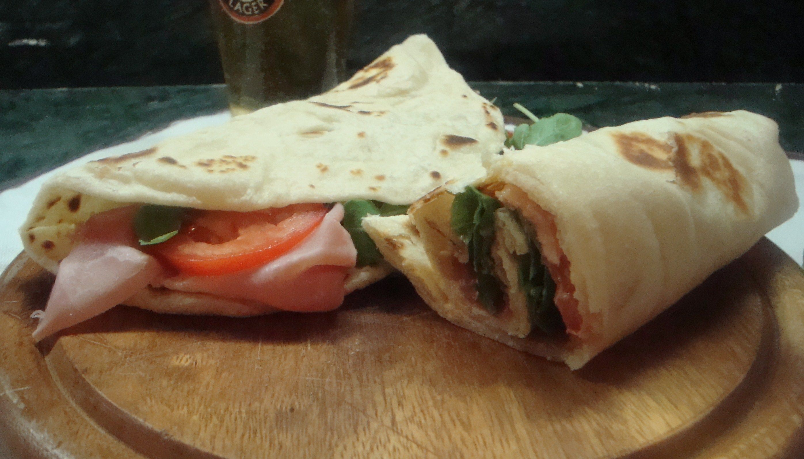 Ora cuocete le piadine su un'ampia padella ben calda senza bisogno di olio o altro. Dopo un paio di minuti che avete cotto dal primo lato, giratela e farcitela come più vi piace, chiudetela a modi libro e chiudete con un coperchio. Ultimate la cottura finché la scamorza non si sarà sciolta.