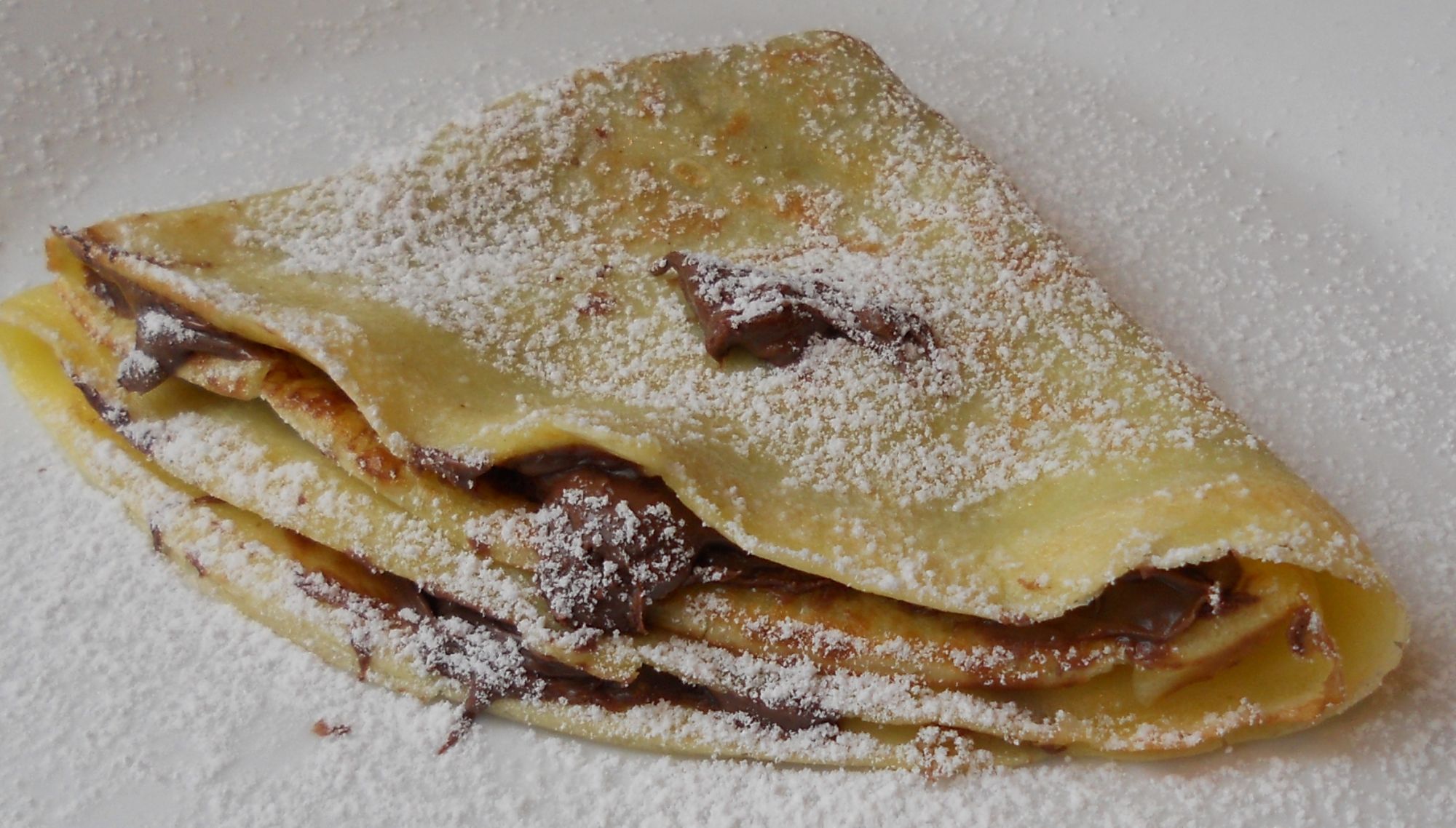 Dorate la crepe per un minuto sul fuoco, poi giratela e fate la stessa cosa sull’altro lato; ponetela su di un piatto, spalmatela con un cucchiaio di Nutella, piegatela a metà su se stessa e poi ancora a metà, formando così una sorta di ventaglio.