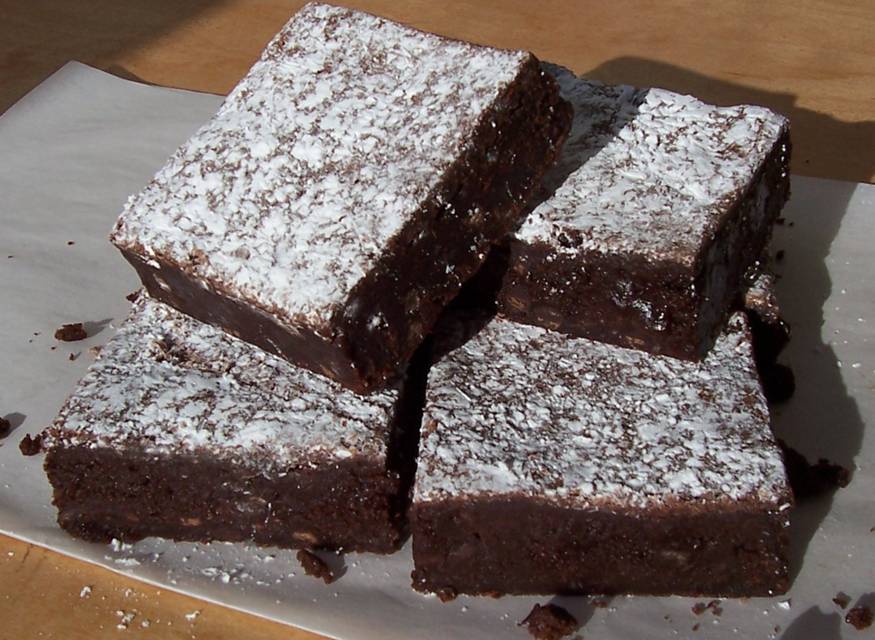 Versare il composto in uno stampo rettangolare da 20cmx28cm (oppure uno tondo da 24cm) rivestito di carta forno e distribuirlo in modo uniforme . Infornare in forno caldo a 180º per 35 minuti: una volta cotto, lasciare riposare l'impasto per 10 minuti prima di tirarlo fuori dallo stampo. Quando si sarà intiepidito dividerlo in quadrati spolverizzando dello zucchero a velo se di gradimento.