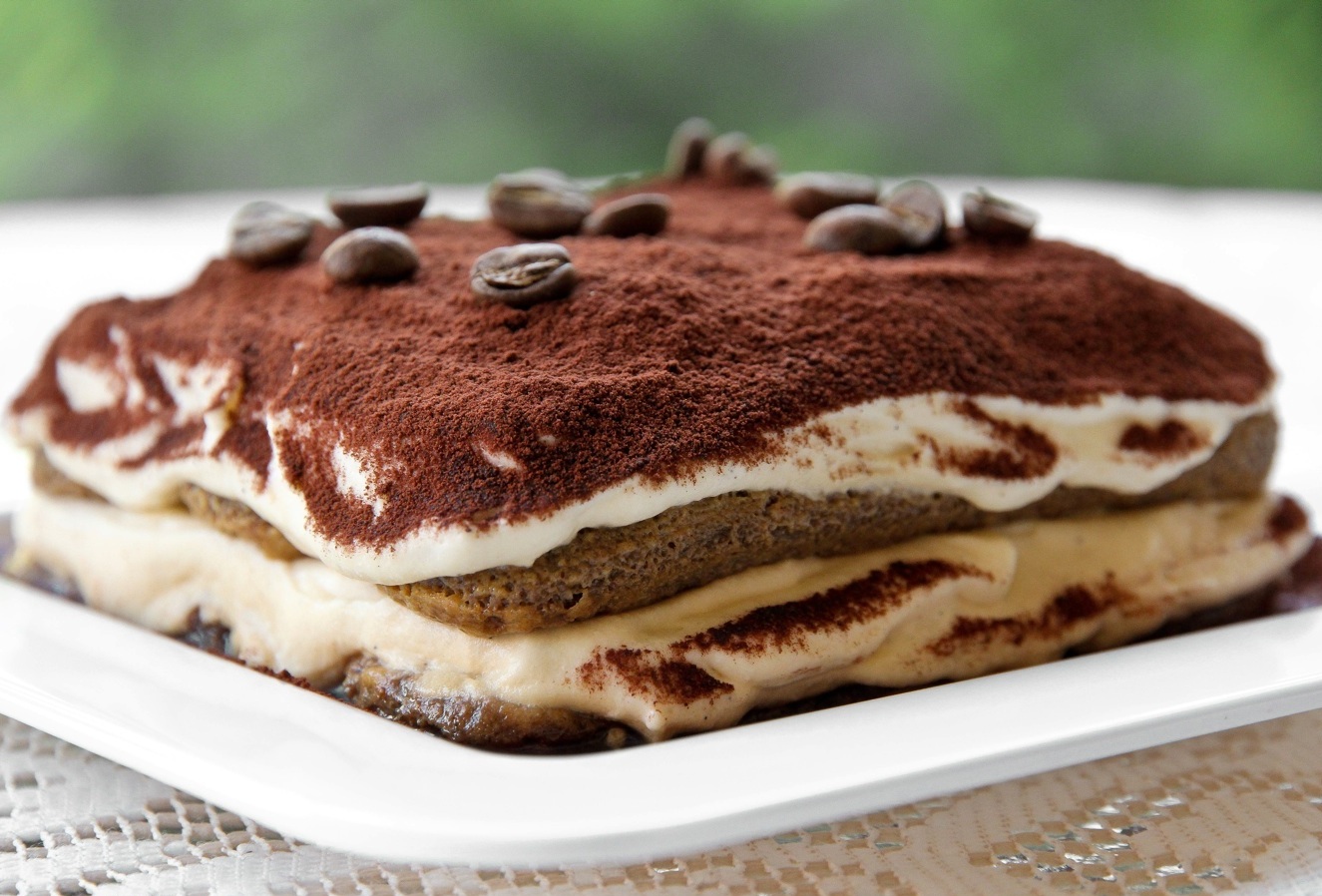TIRAMISÙ CON PANNA E CHICCHI DI CAFFÈ RICOPERTI DI CIOCCOLATO FONDENTE