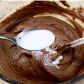 Aggiungete al composto di burro, uova e cioccolato gli ingredienti (7) setacciati alternando l’aggiunta del latte (8) (non troppo freddo). Una volta ottenuto il composto finale, imburrate e infarinate una tortiera del diametro di 22-24 cm quindi versatelo al suo interno (9), livellando poi la superficie. Infornate in forno statico già caldo a 180° per circa 60 minuti, quindi pungetela con uno stecchino per vedere se la torta al cioccolato è cotta. Lasciatela leggermente intiepidire poi sformatela e ponetela su di una gratella per farla raffreddare definitivamente.