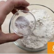 Versate a filo il composto di cioccolato e burro e mescolate ancora (7). Unite il lievito in polvere alla farina (8) e con il sale e setacciate tutto insieme.