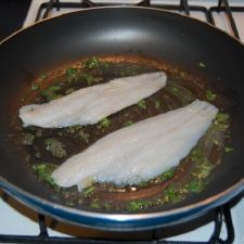 In una padella, versare dell'olio ed il panetto di burro, lasciando che si scaldino, quindi aggiungere le fettine precedentemente intinte nella farina e soffriggerle da entrambi i lati.