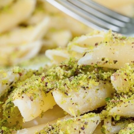 La pasta al pesto di pistacchi è pronta e se la si vuole presentare in maniera curata, servirla nel piatto con granella di pistacchi, parmigiano e pepe.