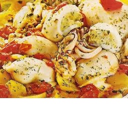 - 4 seppie grandi, 100 g di pane raffermo, prezzemolo, 2 patate, 1 spicchio d'aglio, una costa di sedano, una carota, uno scalogno, un uovo, 150 g di gamberetti, insalata mista, pomodorini, olio extravergine d'oliva, sale, pepe