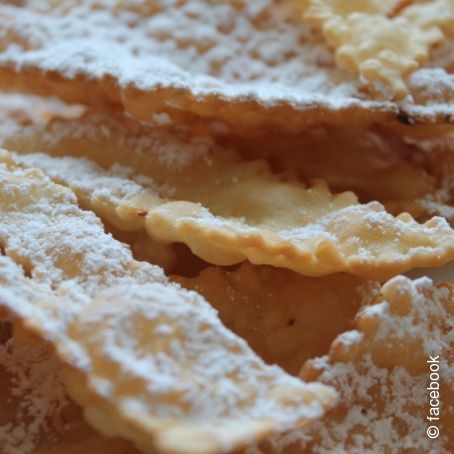 Ponete le strisce così ottenute (2 o 3 alla volta) in abbondante olio ben caldo ma non bollente (170-180 gradi al massimo), girandole su ambo i lati e stando attenti a non bruciarle; appena diventeranno dorate, toglietele dall’olio e ponetele a sgocciolare su di una brillantiera, griglia o carta assorbente. Quando diventeranno fredde ponetele su di un piatto da portata e cospargetele di zucchero al velo vanigliato.