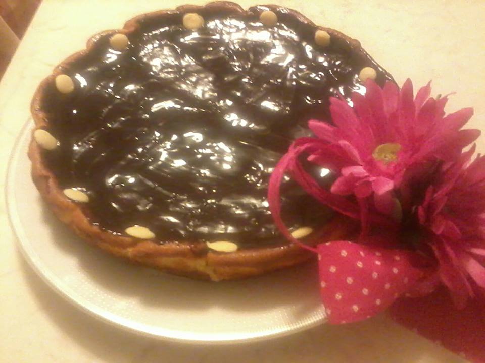 Sciogliere in un pentolino il cioccolato fondente la nutella e un pochino di latte.quando è bello fuso versare nella torta oramai fredda e lasciar raffreddare nuovamente .Dopo di chè mettere in frigo per un'oretta circa.