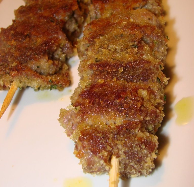 Procedere fino ad esaurimento degli ingredienti e infine infilate le braciole dividendole in diversi spiedini.