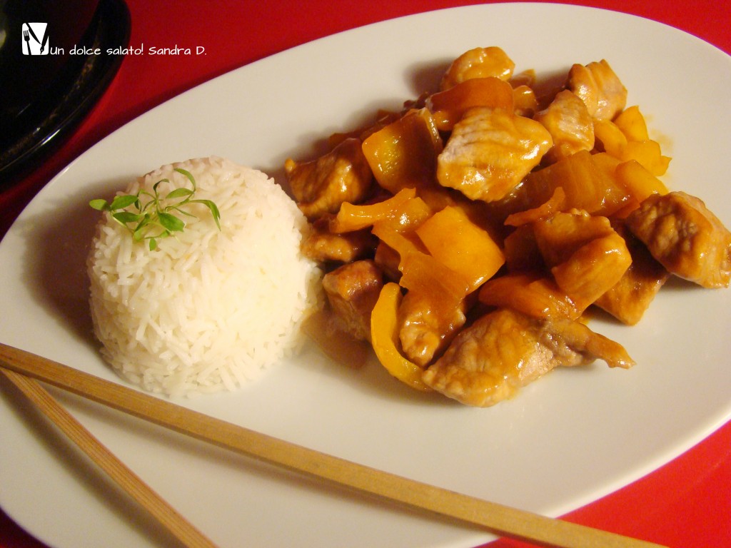 Cinque minuti circa prima di spegnere la fiamma alla nostra padella aggiungiamo anche l’ananas tagliata a tocchetti che non si dovrà cuocere troppo, ma semplicemente scottarsi.