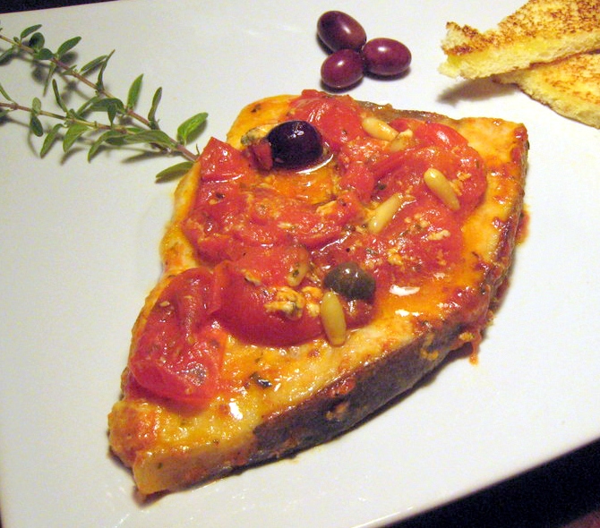 Alla salsa è possibile aggiungere una manciata di olive nere taggiasche e una di pinoli tostati.