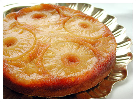imburrare una teglia e cospargerla con lo zucchero (meglio di canna) e un po' di pan grattato. appoggiare sul fondo le fettine di ananas sgocciolate.