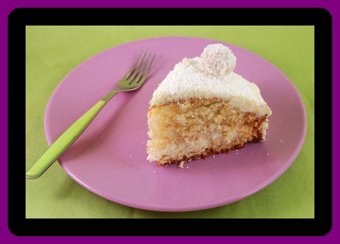 Aggiungete farina e lievito setacciati.Aggiungete le mandorle tritate e la farina di cocco.Versate in una tortiera del diametro di 24-26cm, imburrata e infarinata o rivestita di carta da forno.Cuocete in forno preriscaldato ventilato a 180° per circa 30-40 minuti. Lasciate raffreddare coprendo con un panno e sformatela.Preparate la farcia. Tritate finemente il cioccolato bianco. Unitevi 200ml di panna, dopo averla fatta bollire. Mescolate fino a quando il cioccolato non sarà sciolto.Fate raffreddare completamente ed aggiungete gli altri 200ml di panna, dopo averla montata.Mettete in frigo fino la momento di utilizzarla.