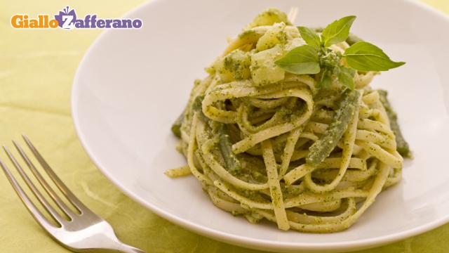 Bavette al pesto, patate e fagiolini